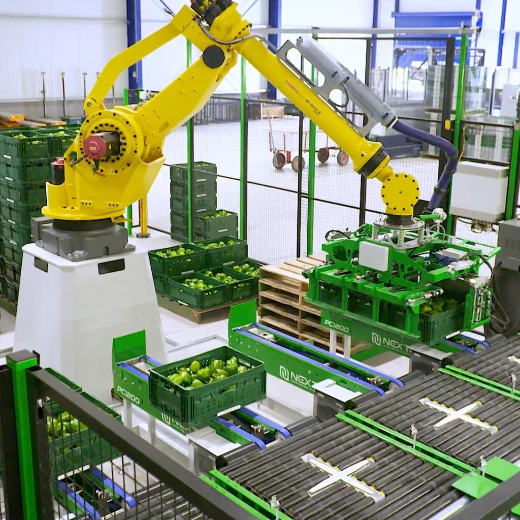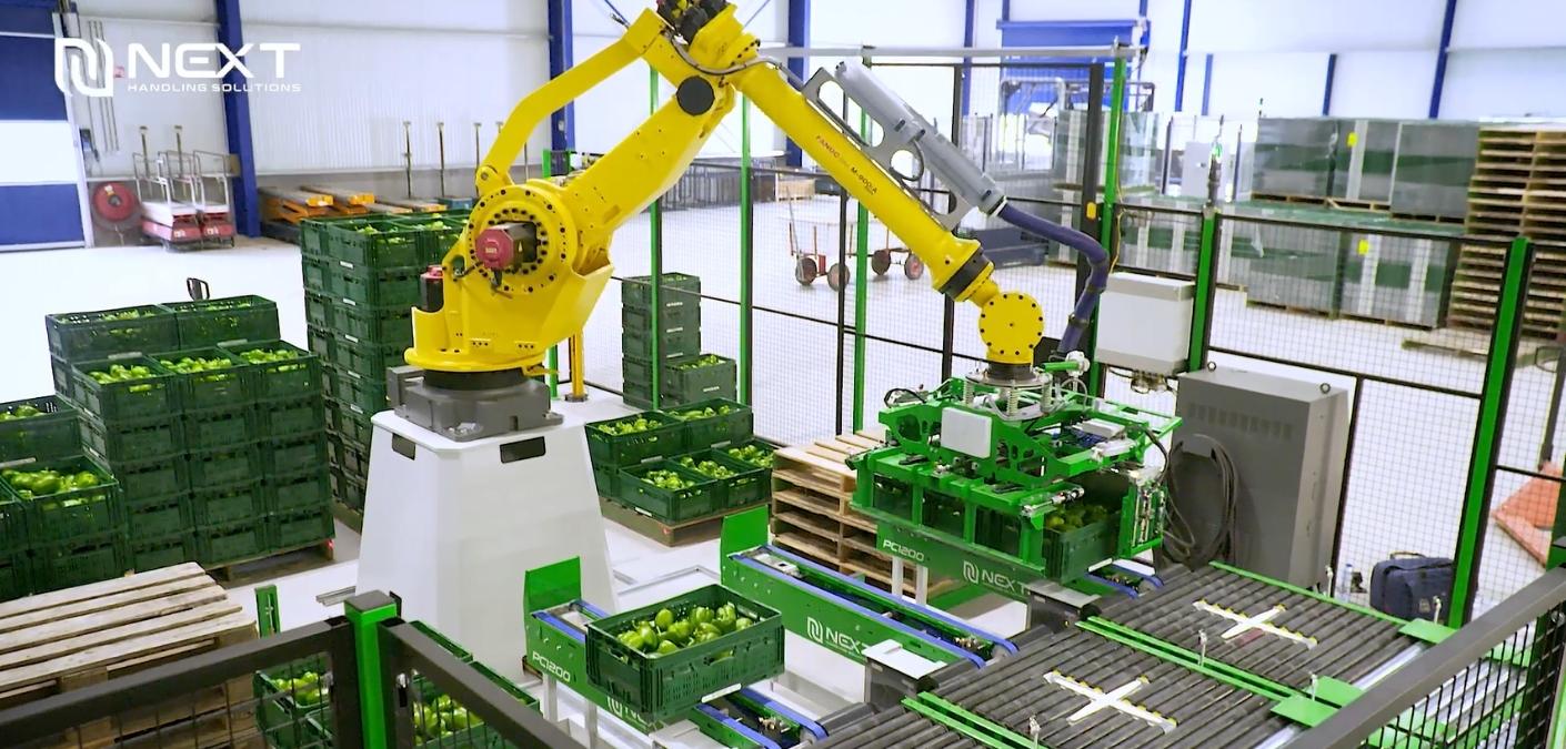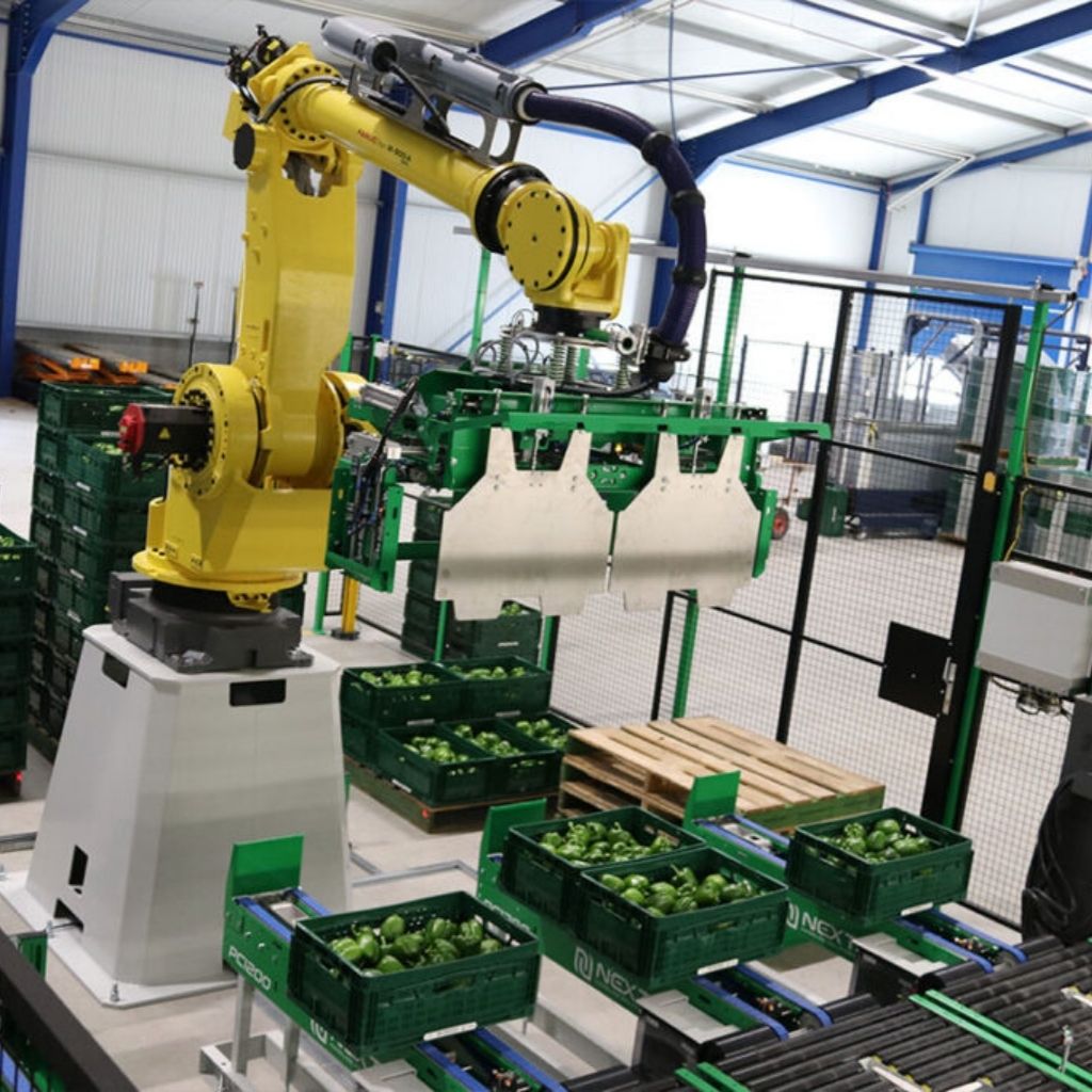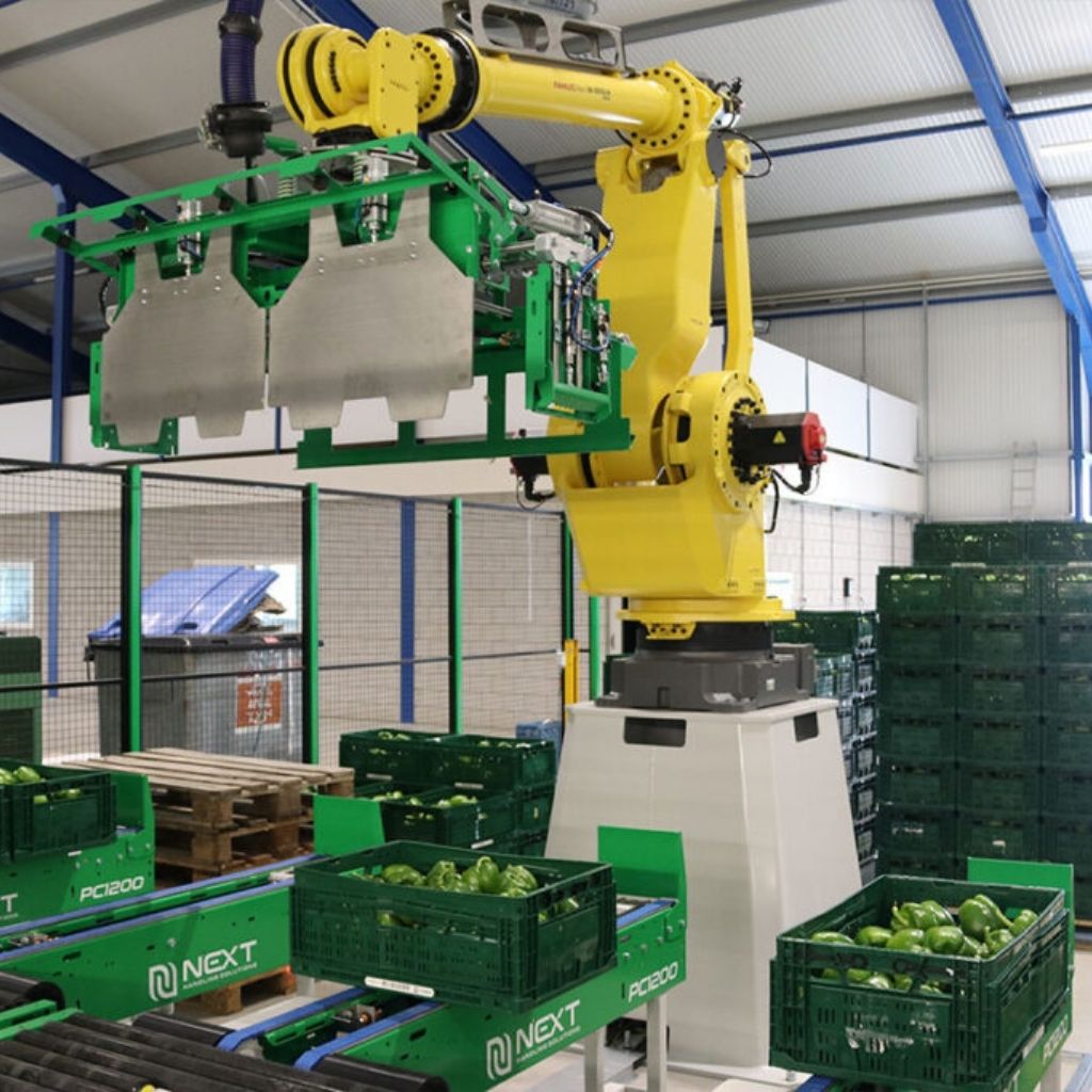 Palletiseerinstallatie bij Motreahof kwekerij B.V.